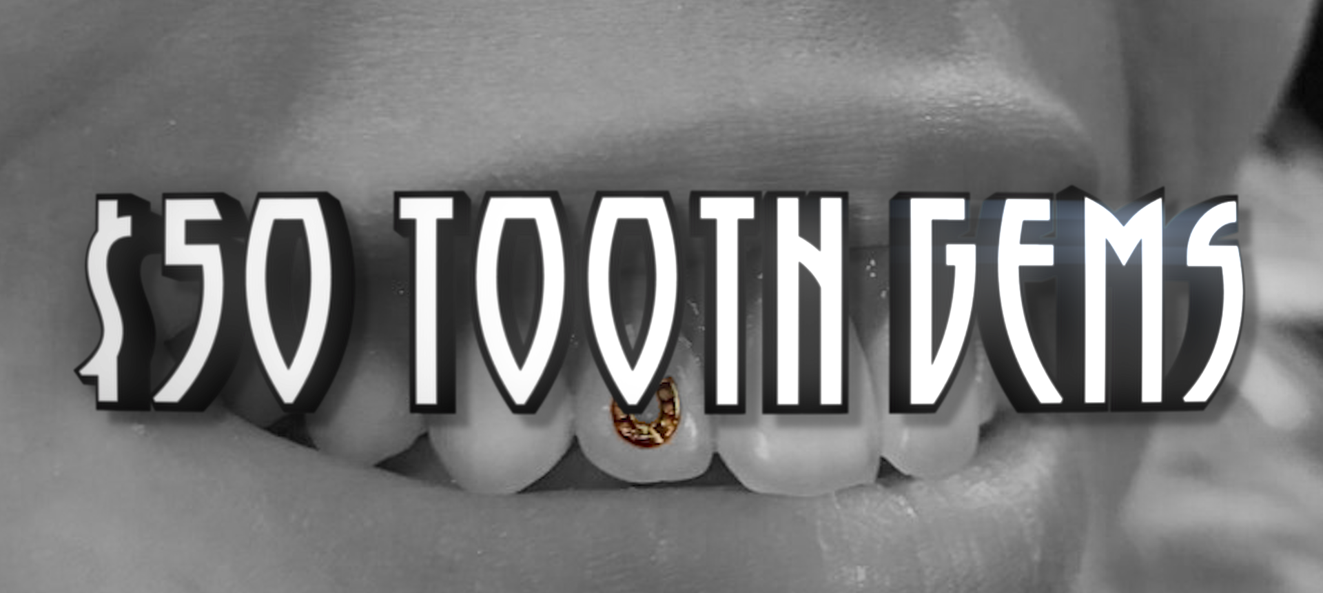 Click on the link below for more details on our 50 tooth gem deal or click the book button to. It is a walk-in tattoo shop offering tattoos piercings and tooth gems on a daily service. Application is perfectly safe non-invasive no drilling required and on average lasts about 1 year or until removed by your dental professional.